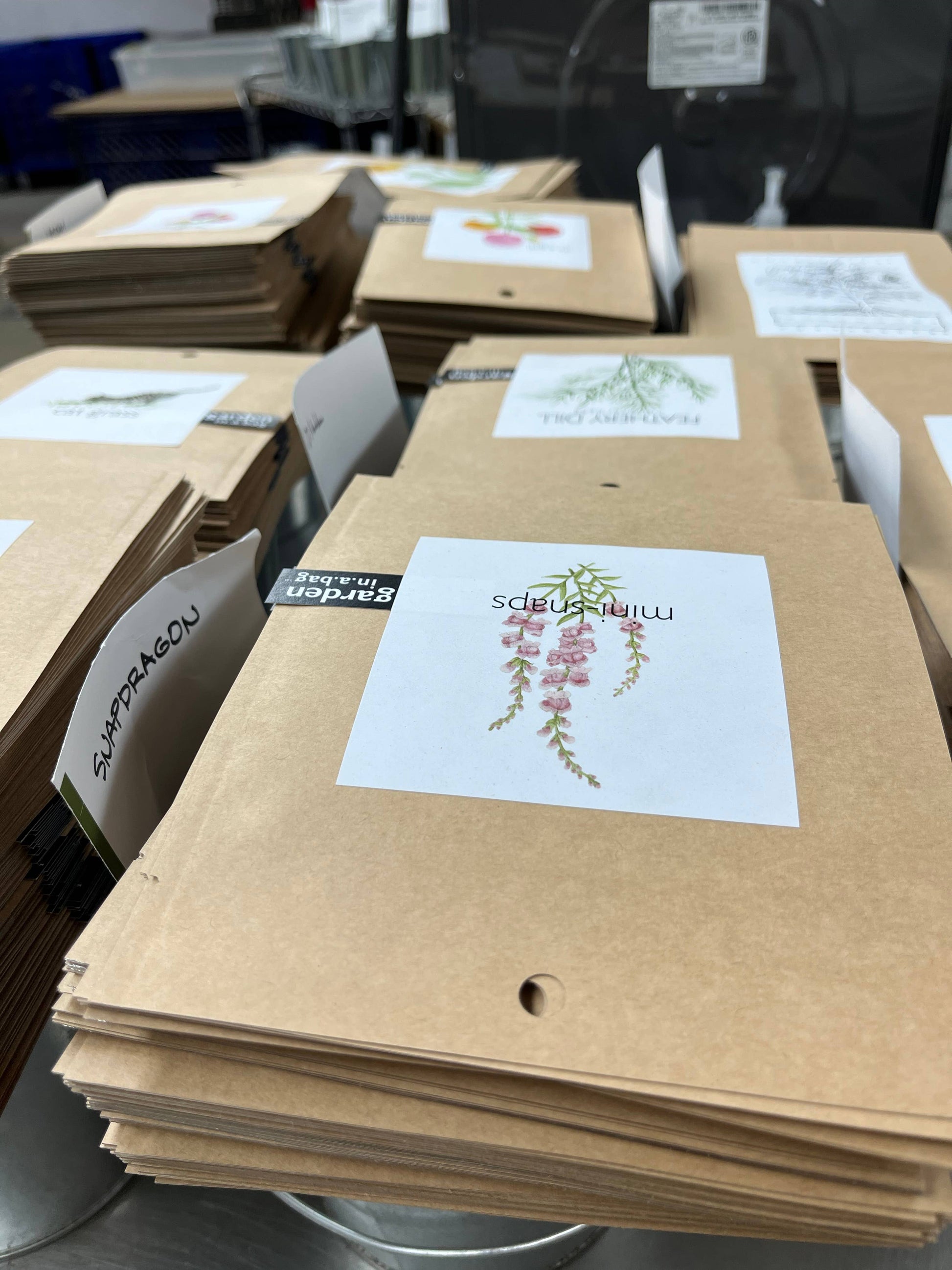 Mini-Snapdragon {Antirrhinum majus} Rose-pink clusters of flowers on sturdy stems named for the flower head which, when laterally squeezed, is reminiscent of the head of a dragon opening its mouth. To encourage more blossoms, pinch off old blooms. Complete to grow kit in a leak proof bag a perfect gift for her, Valentine's Day or any nature lover.