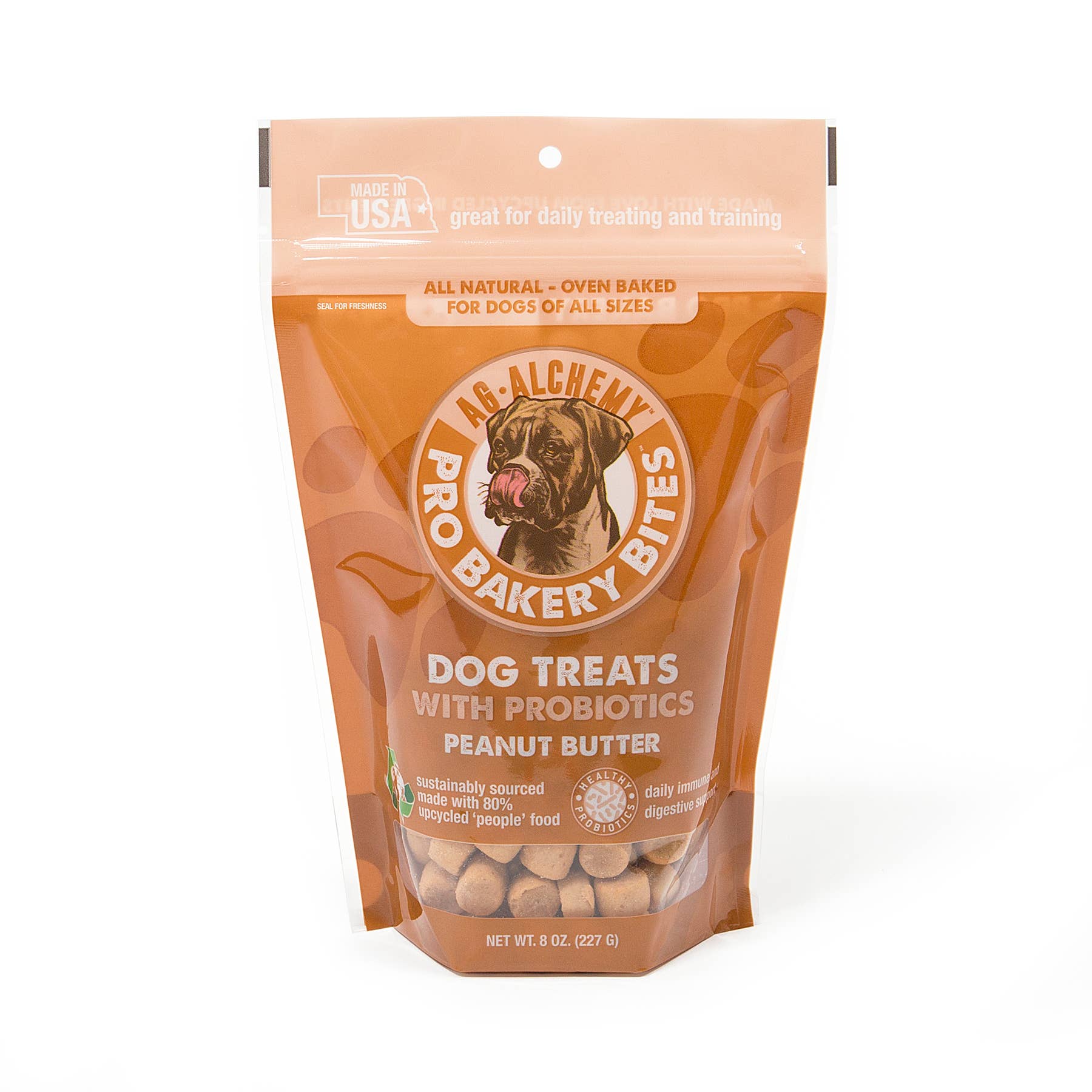 Dogs love Pro Bakery Bites treats because they taste great. Dog owners love them because they contain probiotics that promote gut health, a strong immune system, and digestive balance. Probiotics are the friendly bacteria that every dog needs to enjoy overall health and vitality. See more happy tail wagging by treating your dog to Pro Bakery Bites and better digestive health.